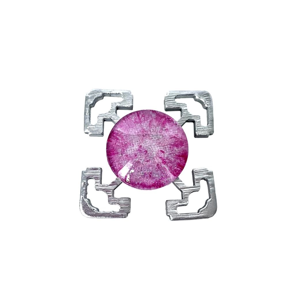 Brož je v jemně růžové barvě se stříbrnými odlesky