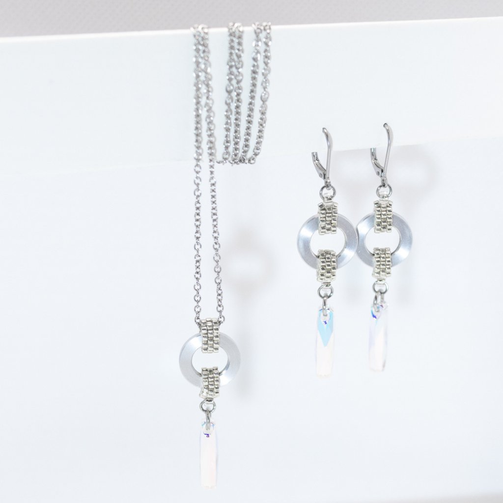 Autorská sada šperků z duralu, korálků a komponentů Swarovski