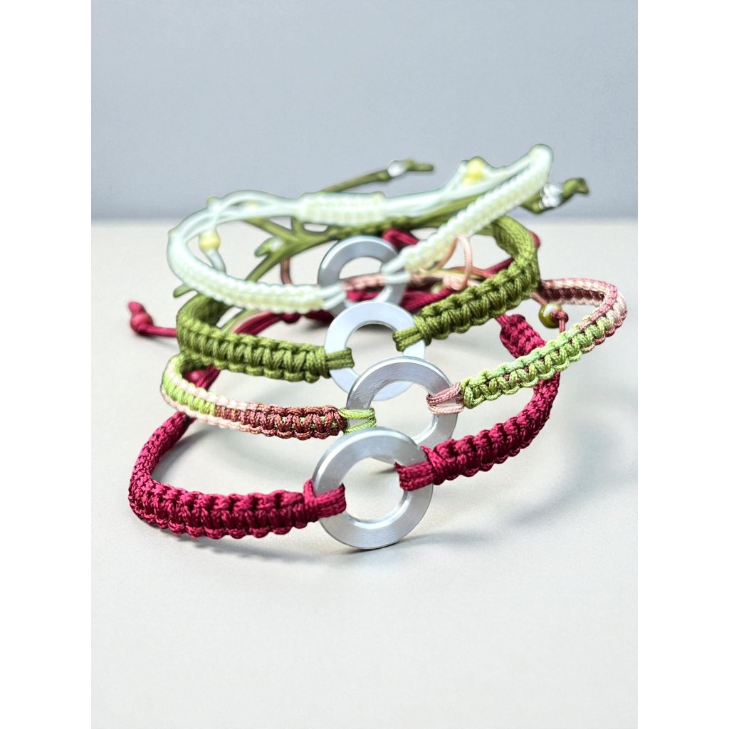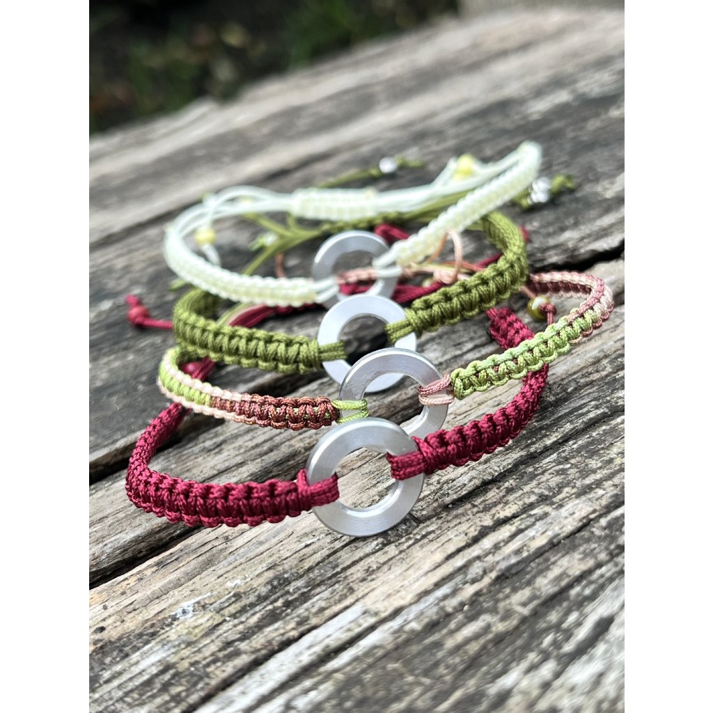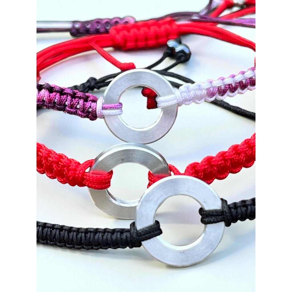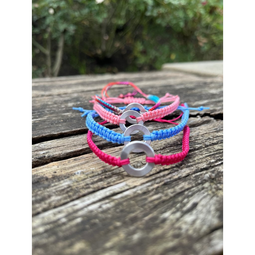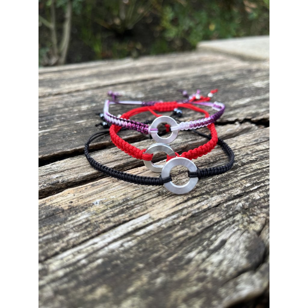 Minimalistický náramek se šňůrkou a duralovým kolečkem (1,5 cm)